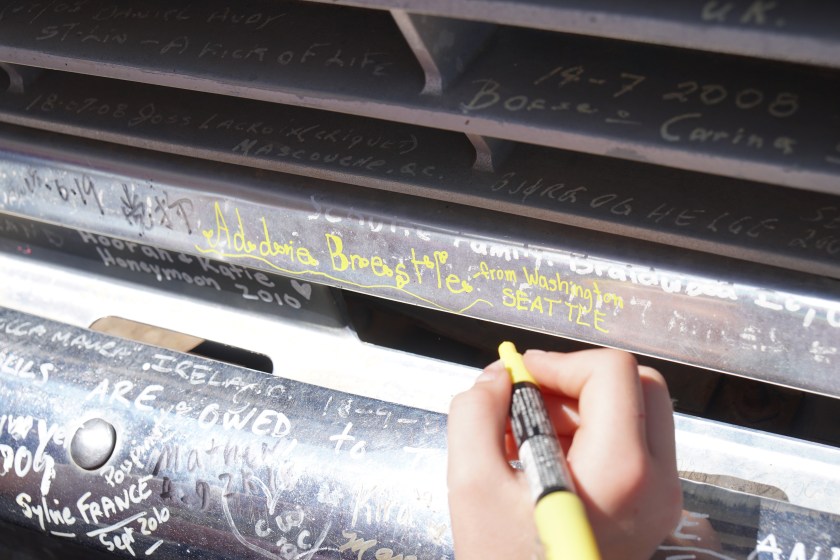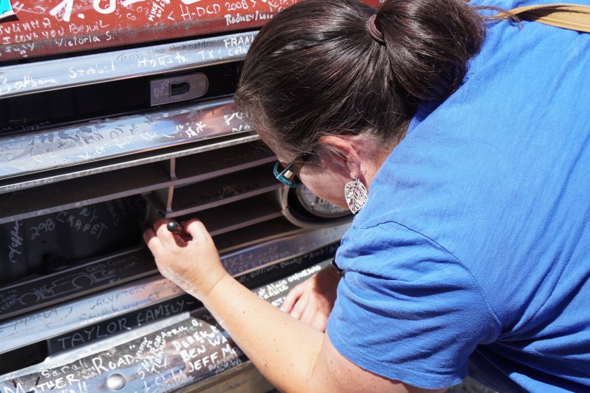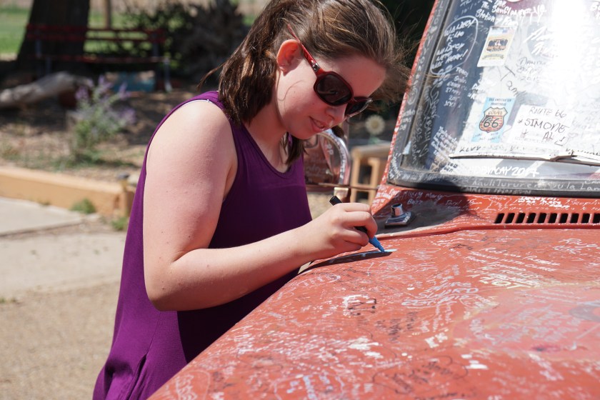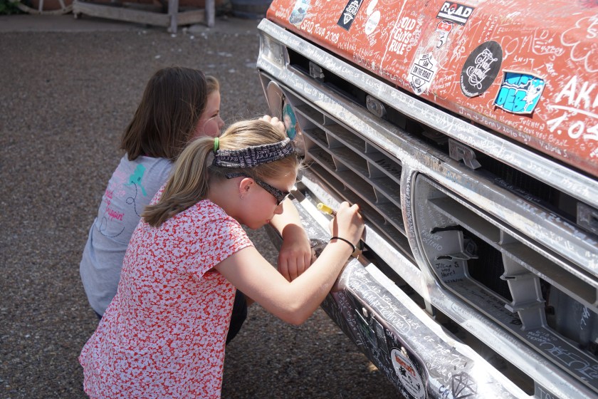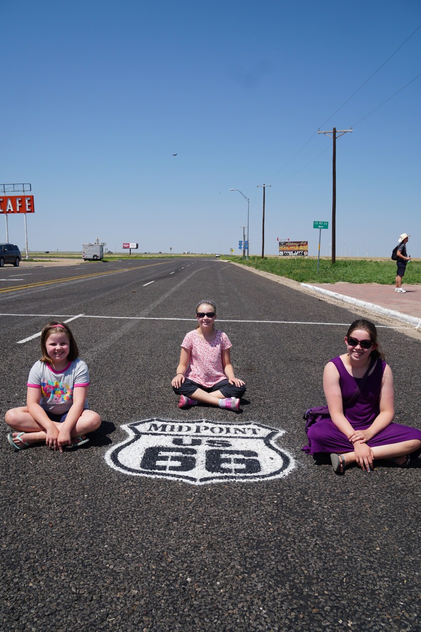 Pie at the Midpoint Cafe. Halfway between Chicago and LA. There was also an old Studebaker truck out front for everyone to sign. The girls got a kick out of digging out our paint pens to sign the truck.